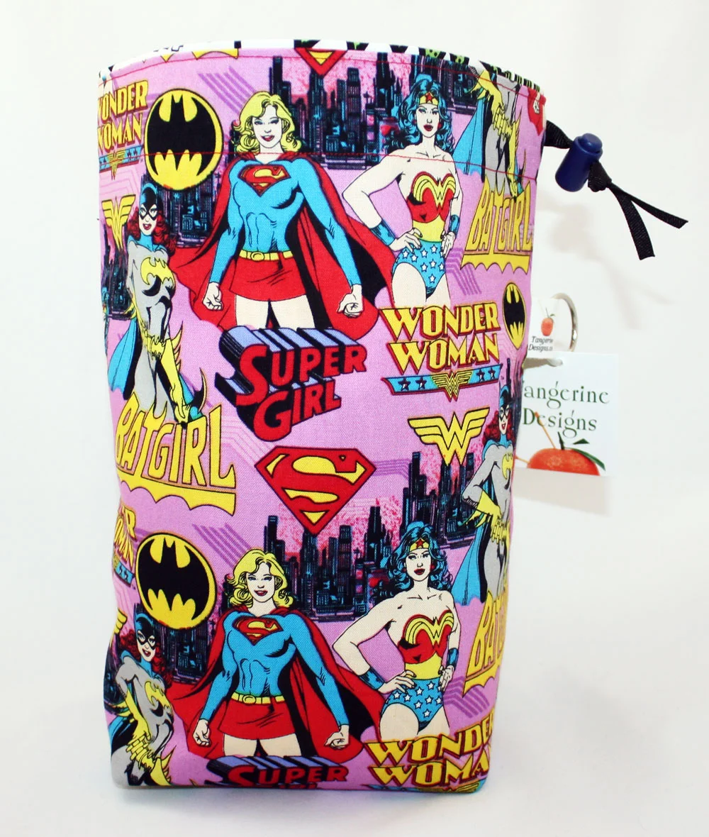 Today's Shop Update at 4 CST will include 2 of each of these designs: Tipsy Elephants, SuperWomen, A$$ in Boots, Winter Friends, Cuckoo, and Christmas Mittens. All will be repeated in future updates except for the Christmas Mittens. Click on any project bag to see a closer image of it.